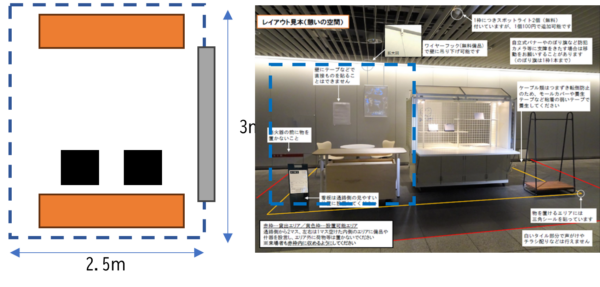 コマサイズ:横幅2.5m×奥行3.0m×高さ1.8m(仕切りパネル)